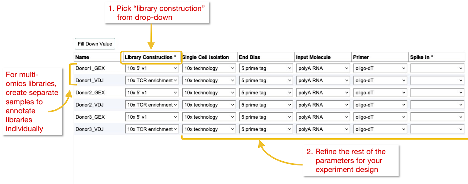 Note: If you have multiplexed data and cannot enter this in the samples table, please include the annotations in a separate processed data file (see below).